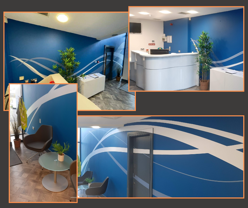 This open-plan office was transformed into a vibrant, branded workspace through the strategic use of vinyl graphics and a thoughtfully curated colour palette. I designed all vinyl elements and selected paint and carpet finishes to reflect and enhance the brand’s visual identity—resulting in a cohesive, functional, and inspiring environment.