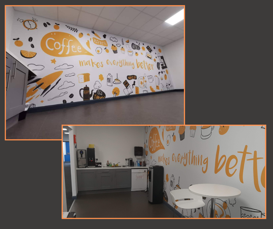 I commissioned a custom mural to enhance the client’s canteen space and reflect their local identity. I sourced a talented mural artist, developed the creative brief, and led the visual direction to ensure the artwork aligned with the brand community roots. The final piece brought a unique, local touch to the space—creating a more engaging and on-brand environment for staff and visitors.